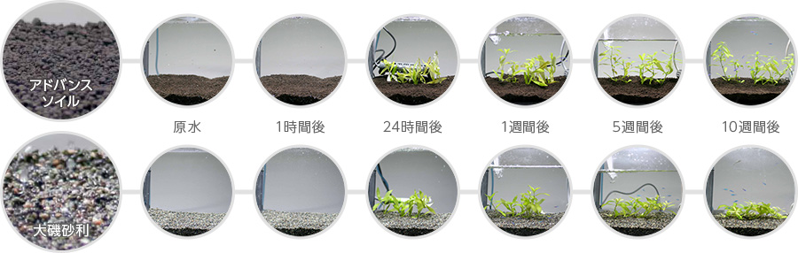アドバンスソイルは、余分な窒素とリンを製造工程で排除し、吸着効果により従来の製品よりもコケが生えにくくなっています。