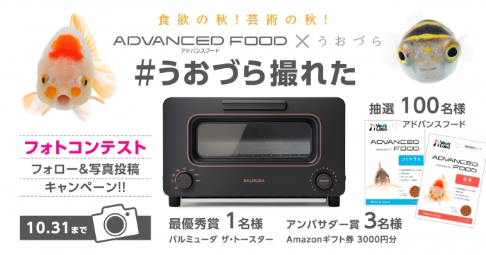 さらに、ご参加いただいた方の中から抽選で合計100名様に、獣医師推奨の観賞魚用エサ「アドバンスフード」と「うおづら はなまる金魚展 Photo Book Vol.1」をプレゼント!!